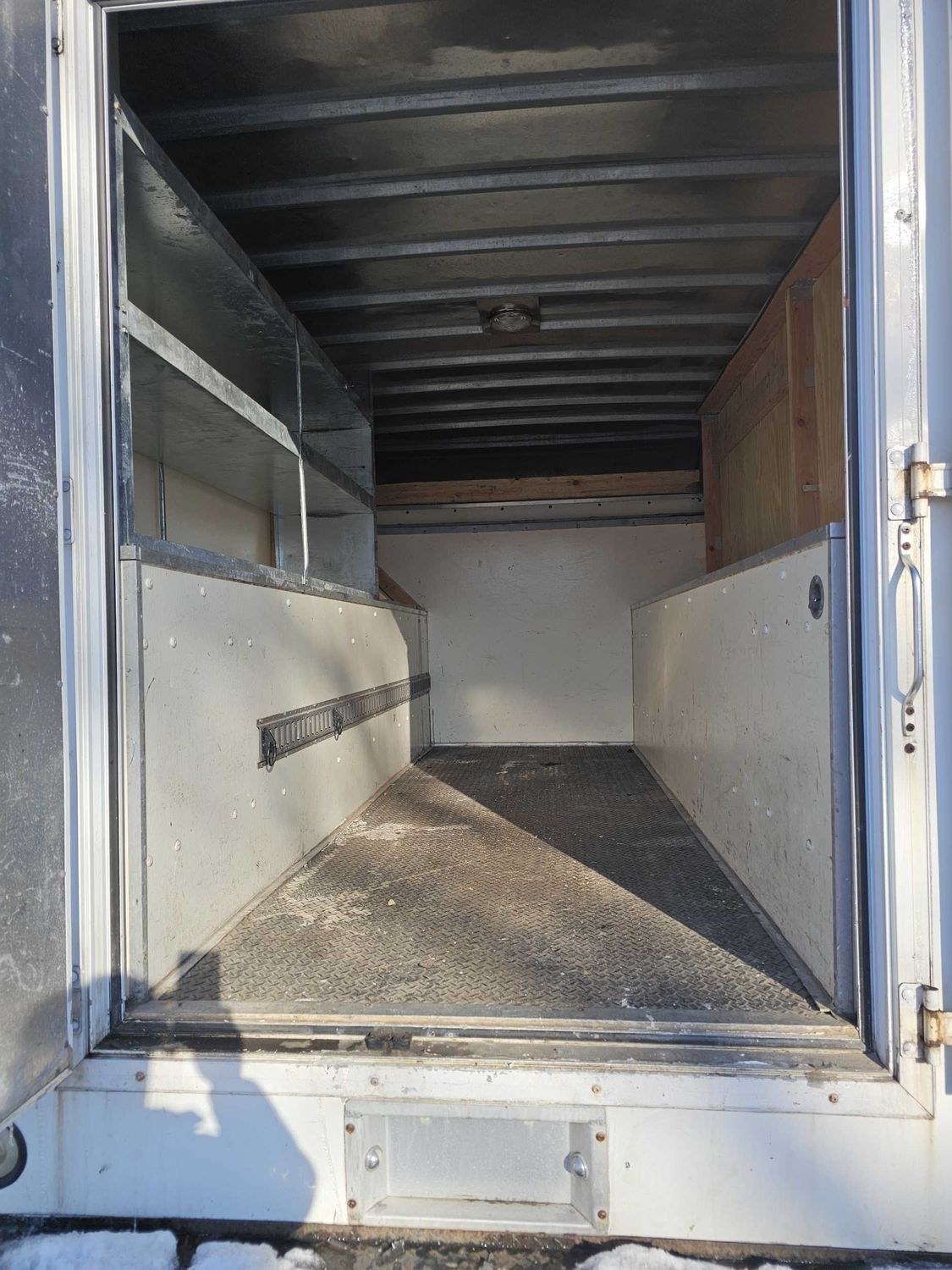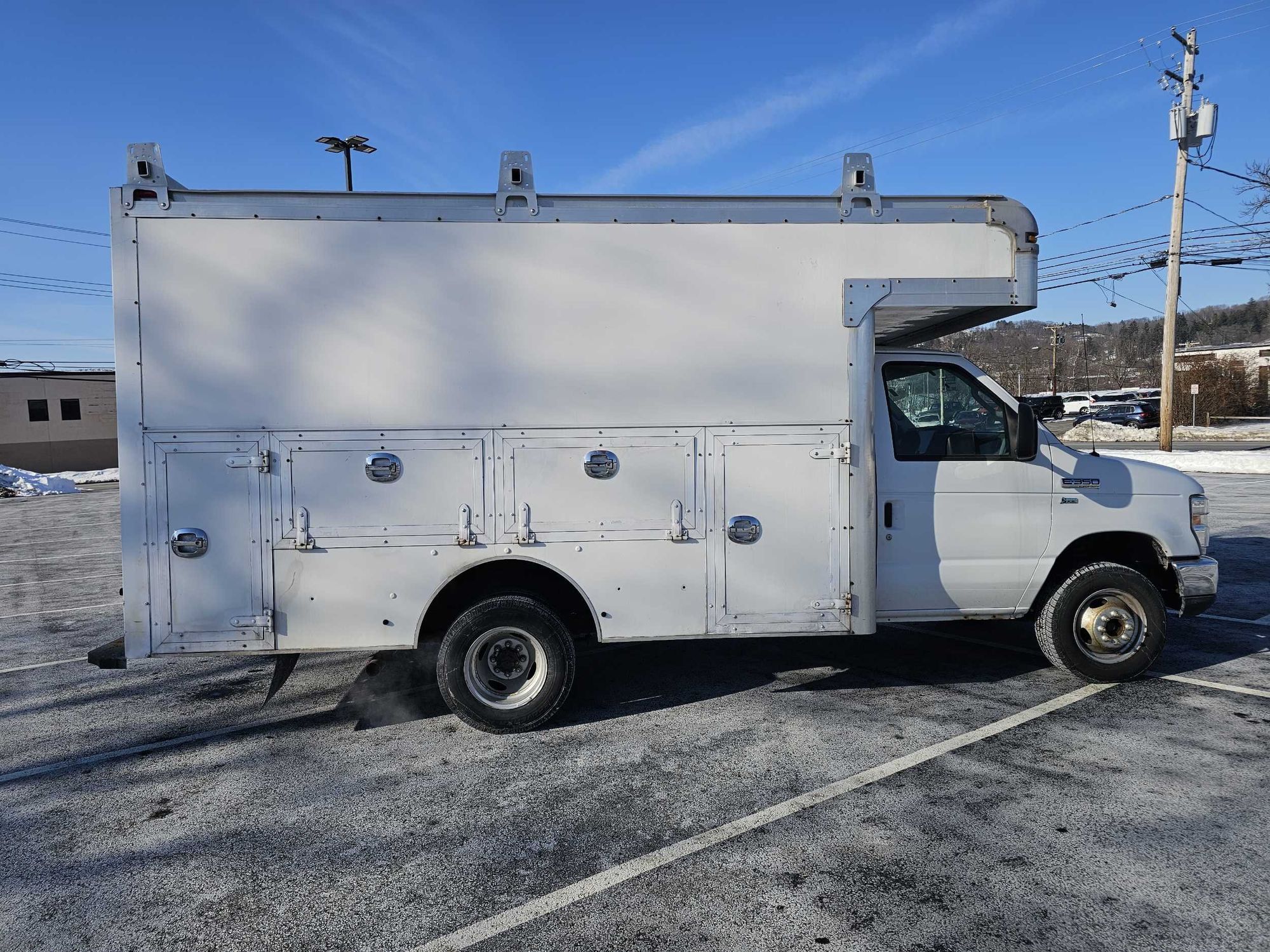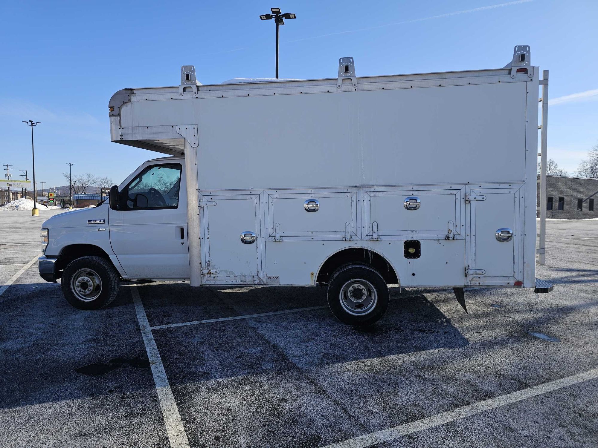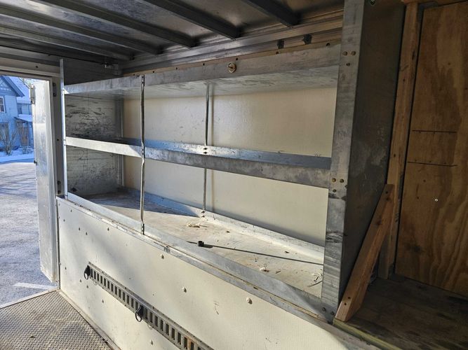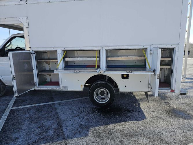 Here is a great Work truck tall walk in utility box, lots of storage compartments and a narrow work bench. permanent rear ladder and a full ladder/ utility rack on top. low miles and decent interior for a work truck. Custom large screen stereo and full gauges. Priced affordable for the working man .