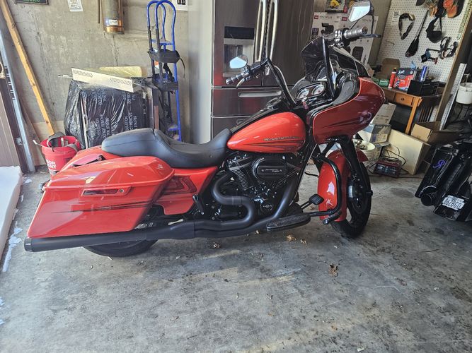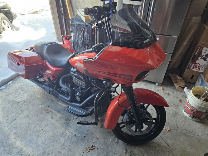 Here is an an awesome Tastefully Accessorized Road glide bright orange Paint 12 inch bars ,Bossomi performance exhaust , Zipper kit , and more ,,,such an eye catcher ! lets deal !!!
