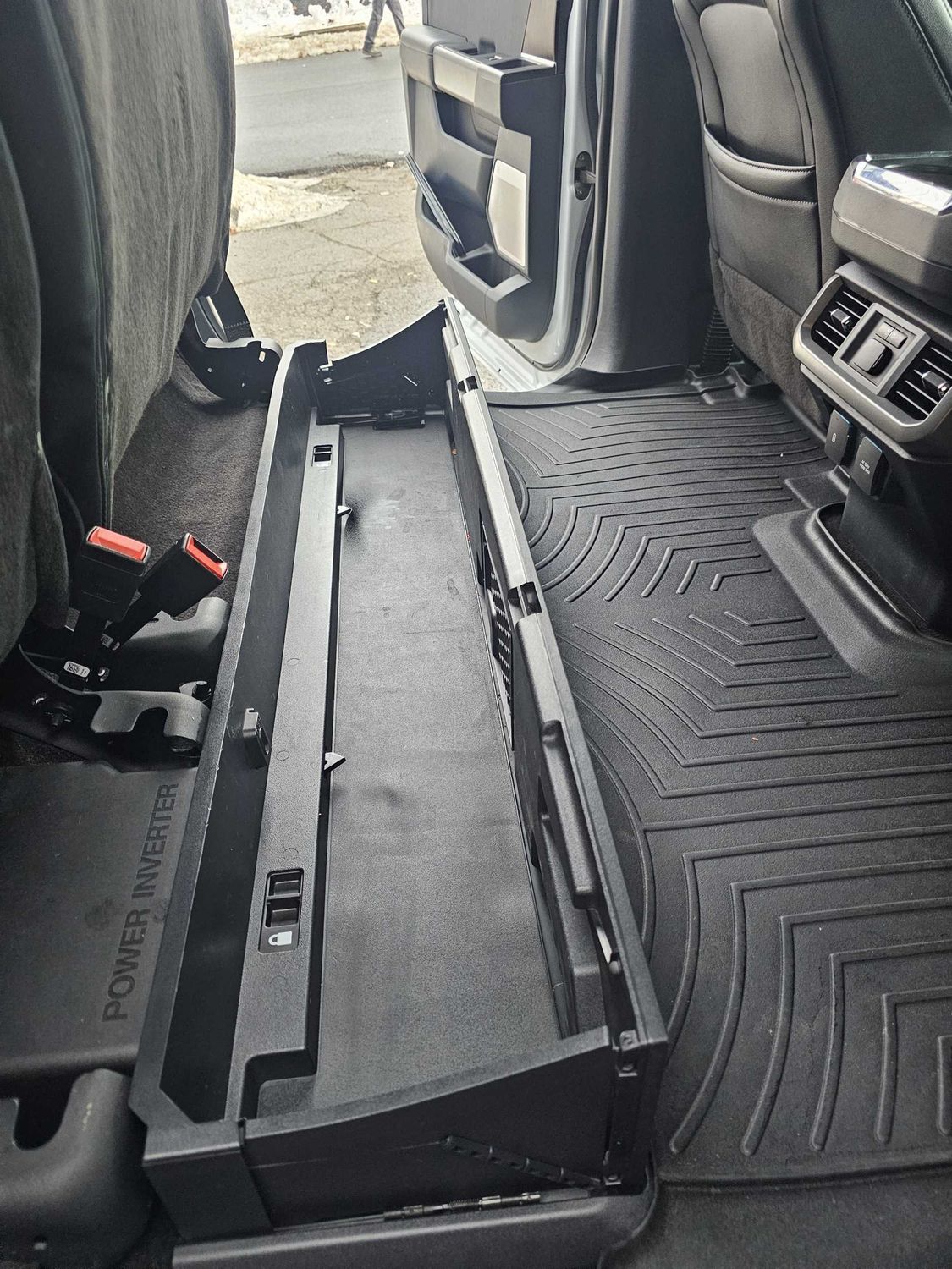 Under seat tray front: Locking front under seat tray